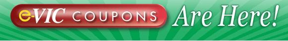 - What are e-VIC Coupons? E-VIC Coupons are electronic coupons and promotions available to you through our e-VIC program. Simply browse and select e-VIC Coupons online that load directly to your VIC Card. When you purchase the qualifying products and when your purchase meets the redemption requirements of an e-VIC Coupon, the savings are automatically applied to your order and are noted on your receipt for each qualifying item.